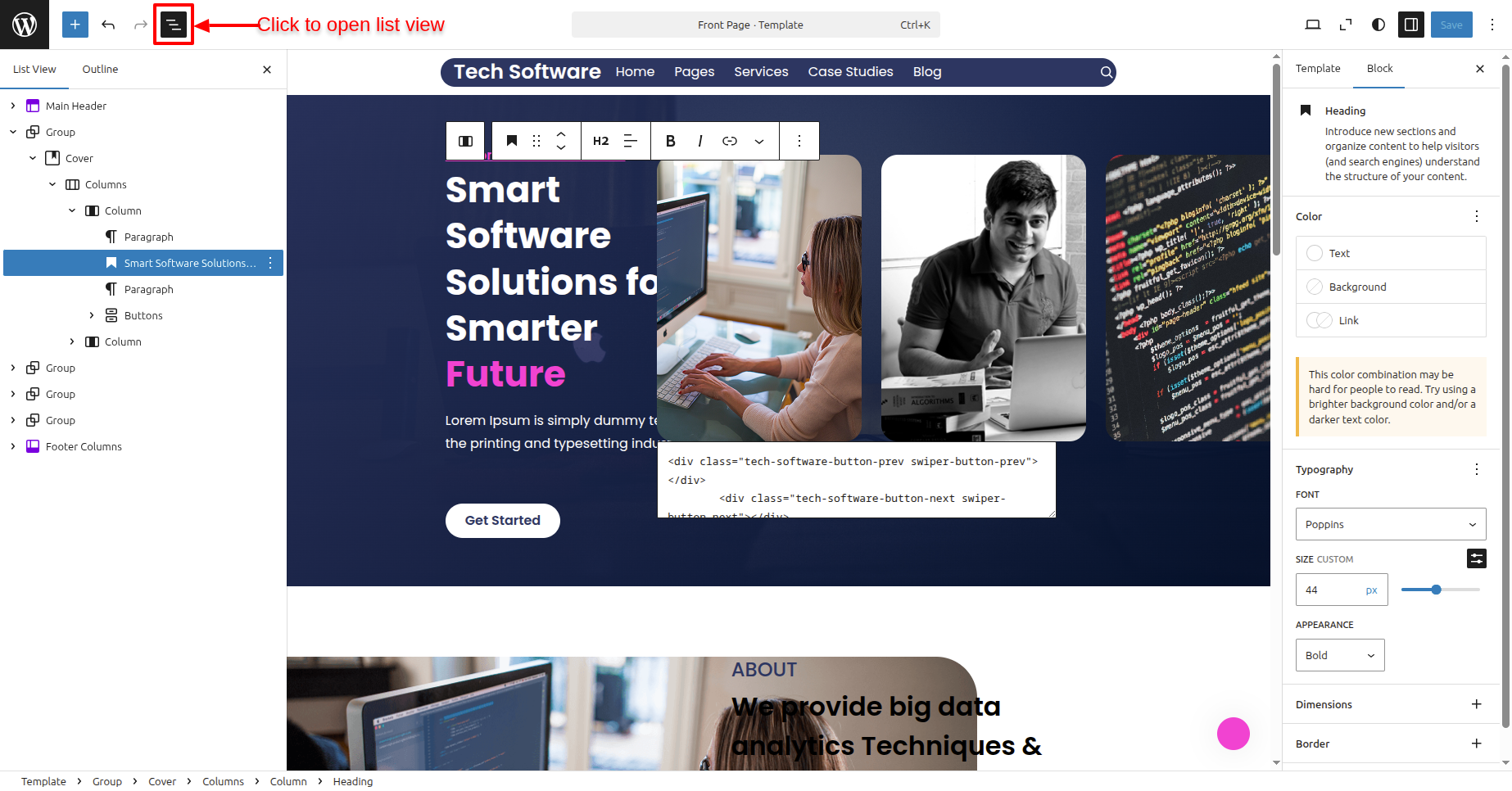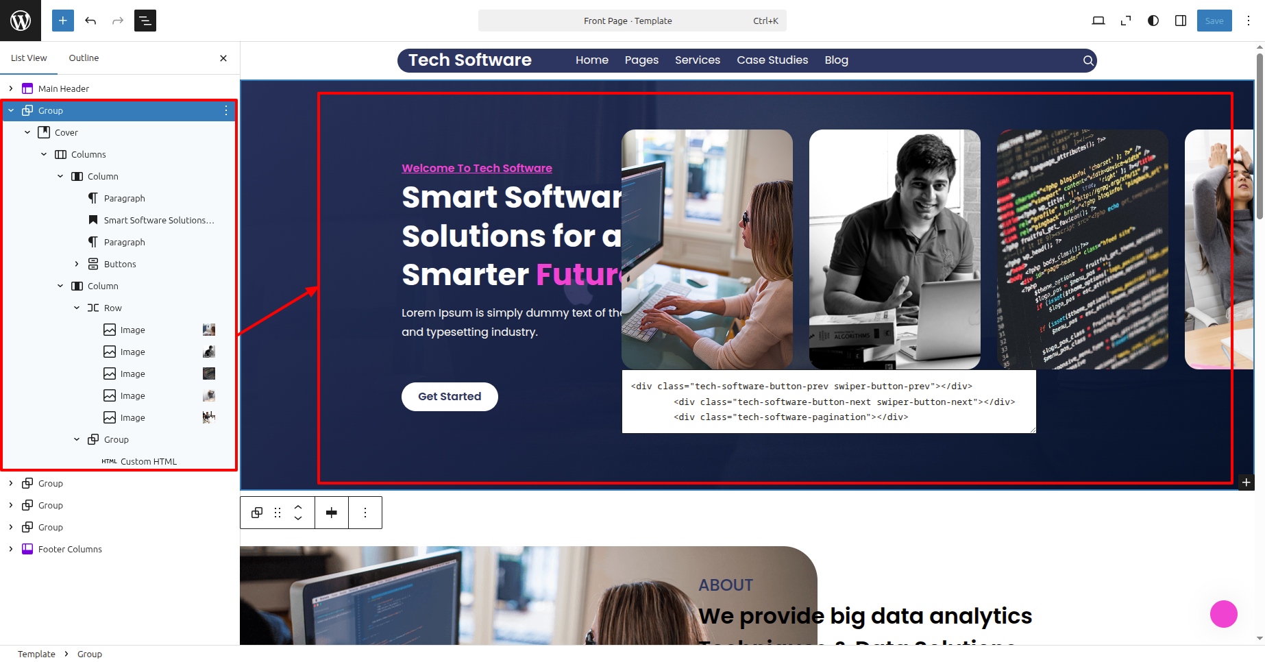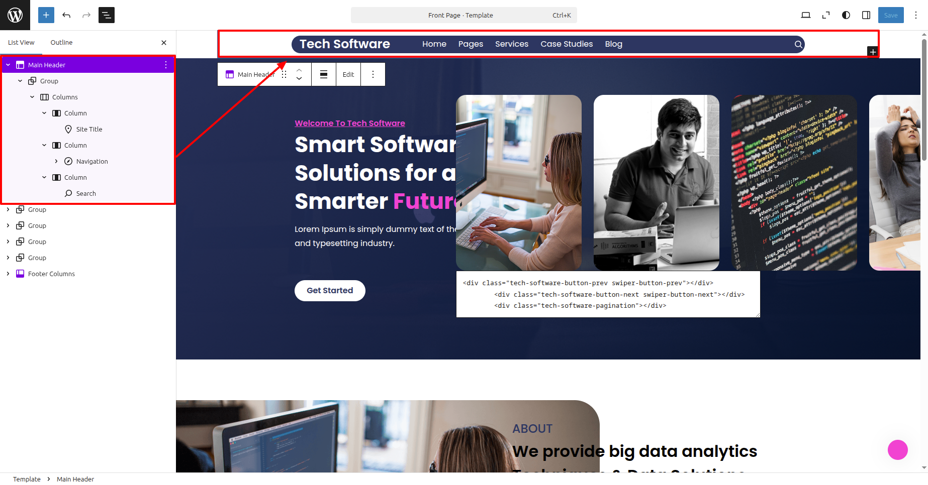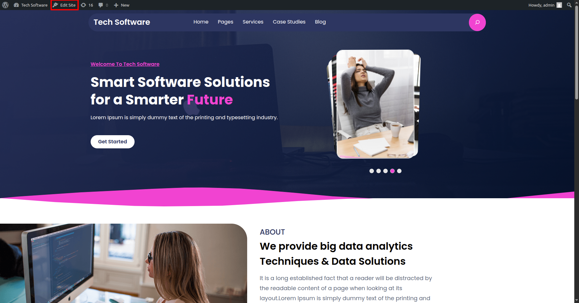 Tech Software is a block theme specifically crafted using the WordPress Site Editor.