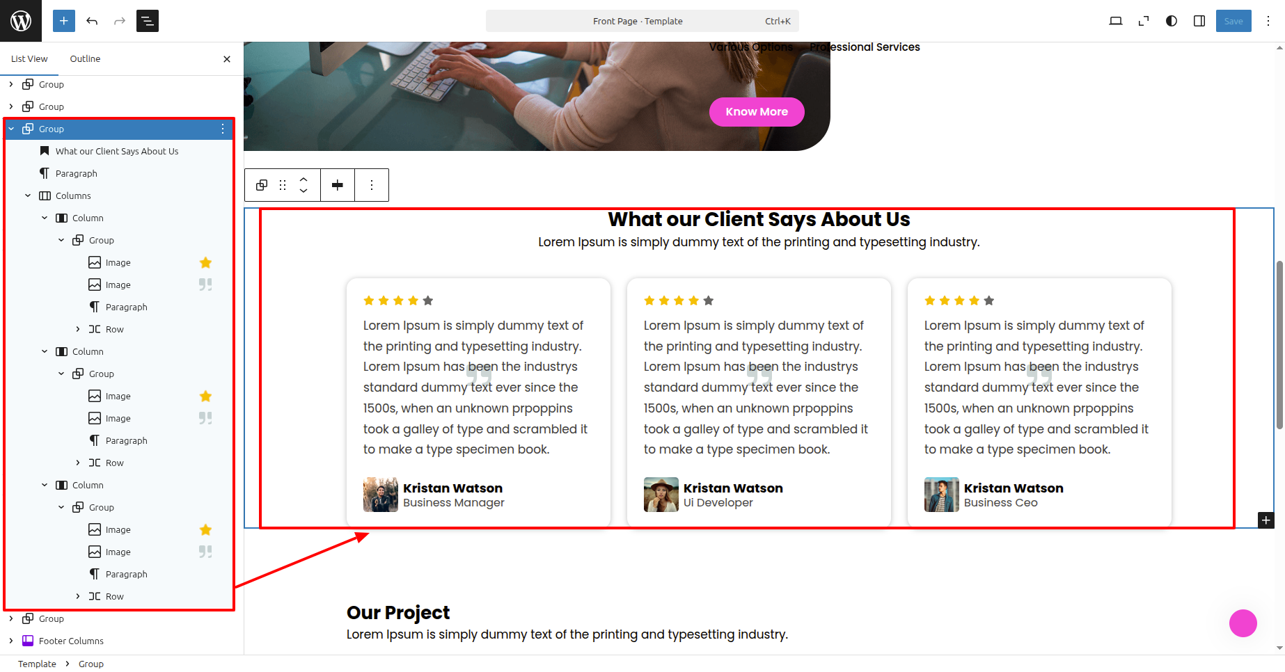 Go to WordPress Dashboard -> Appearance -> Editor -> customize each item according to your preferences by clicking on them.