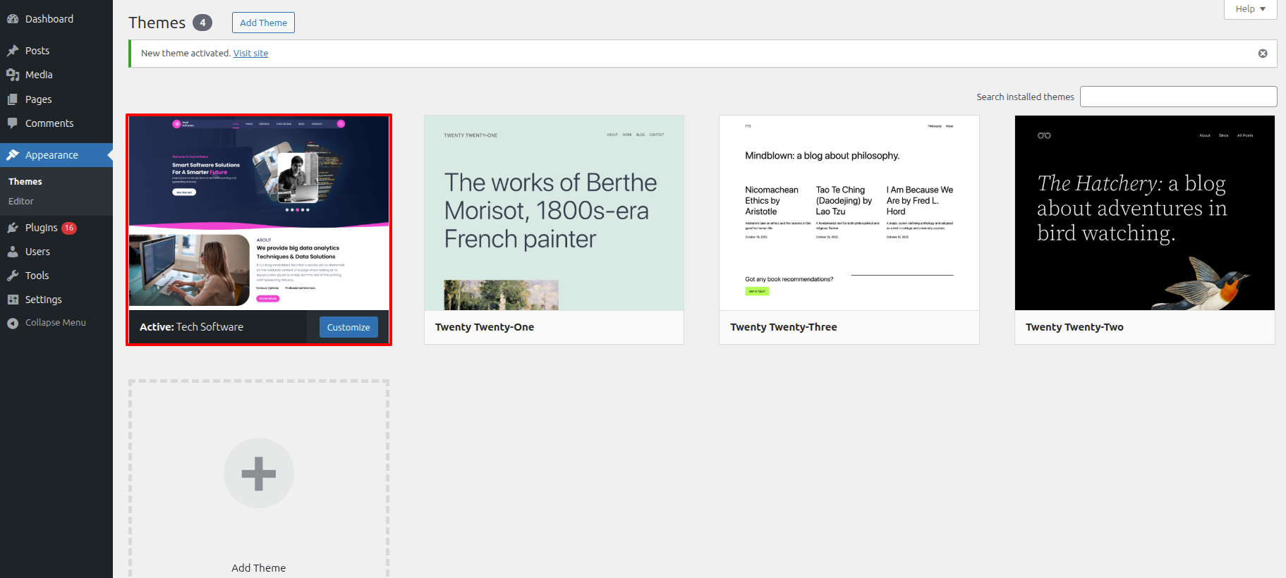 - WordPress must now start installing a theme users have chosen, and upon completion, you will see enthusiastic statement that includes options to activate the theme or preview it operating. Best regards! The installation of thier theme is mostly accomplished and set up.