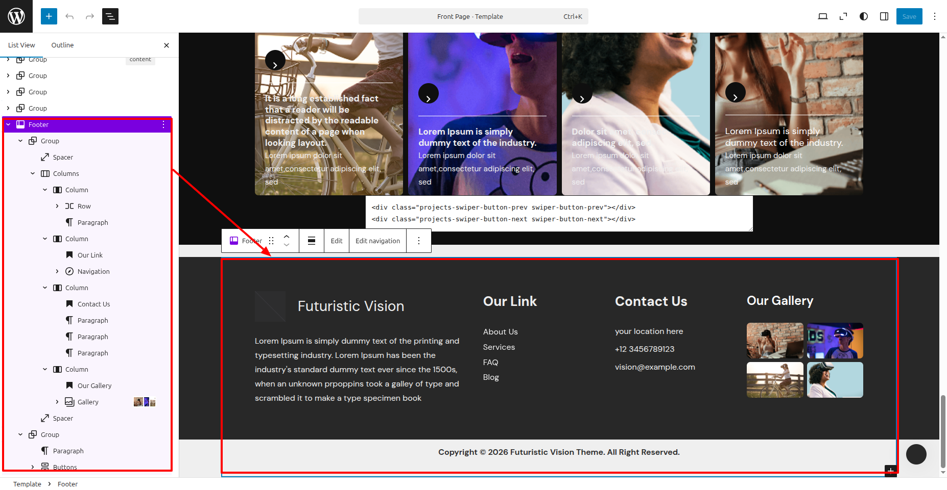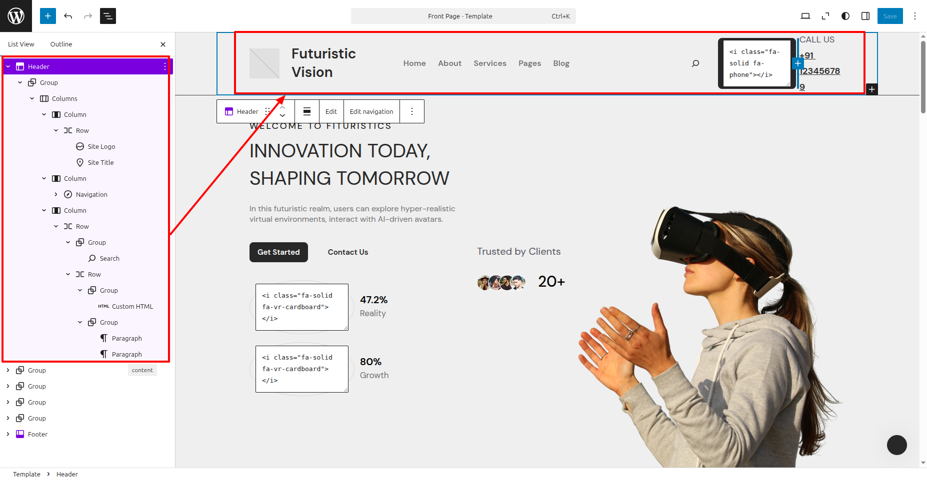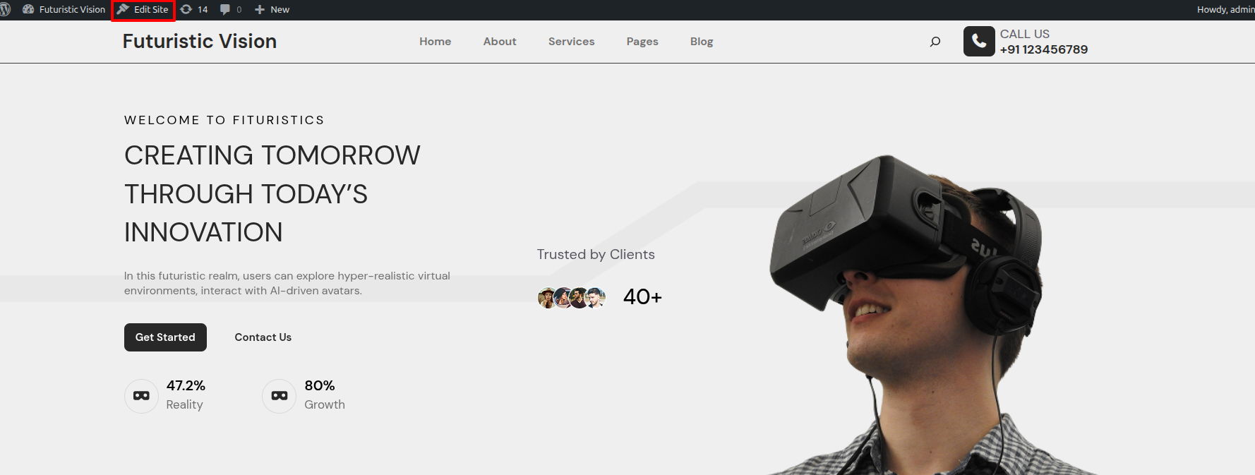 Futuristic Vision is a block theme specifically crafted using the WordPress Site Editor.