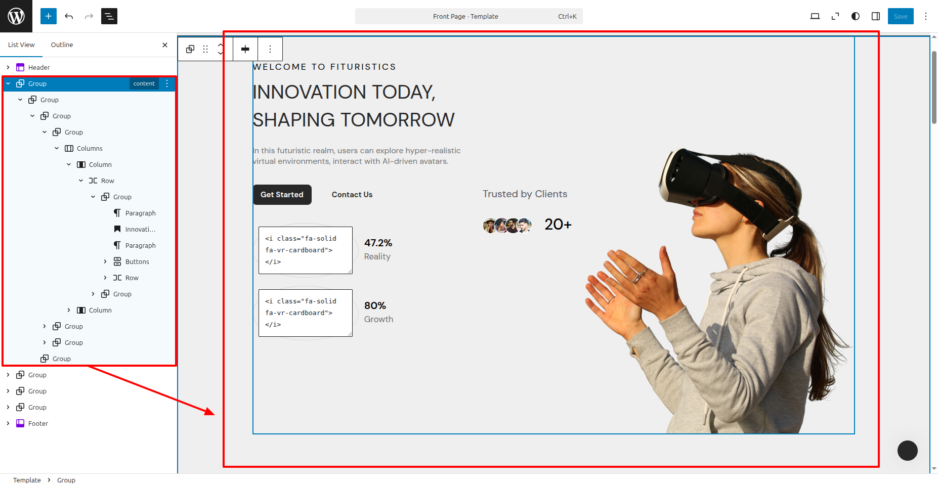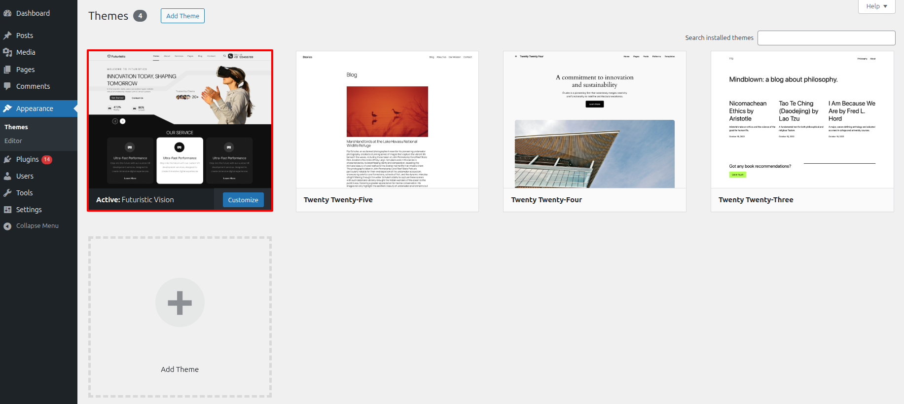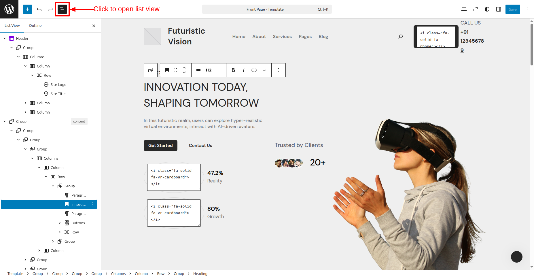 Futuristic Vision is a block theme specifically crafted using the WordPress Site Editor.