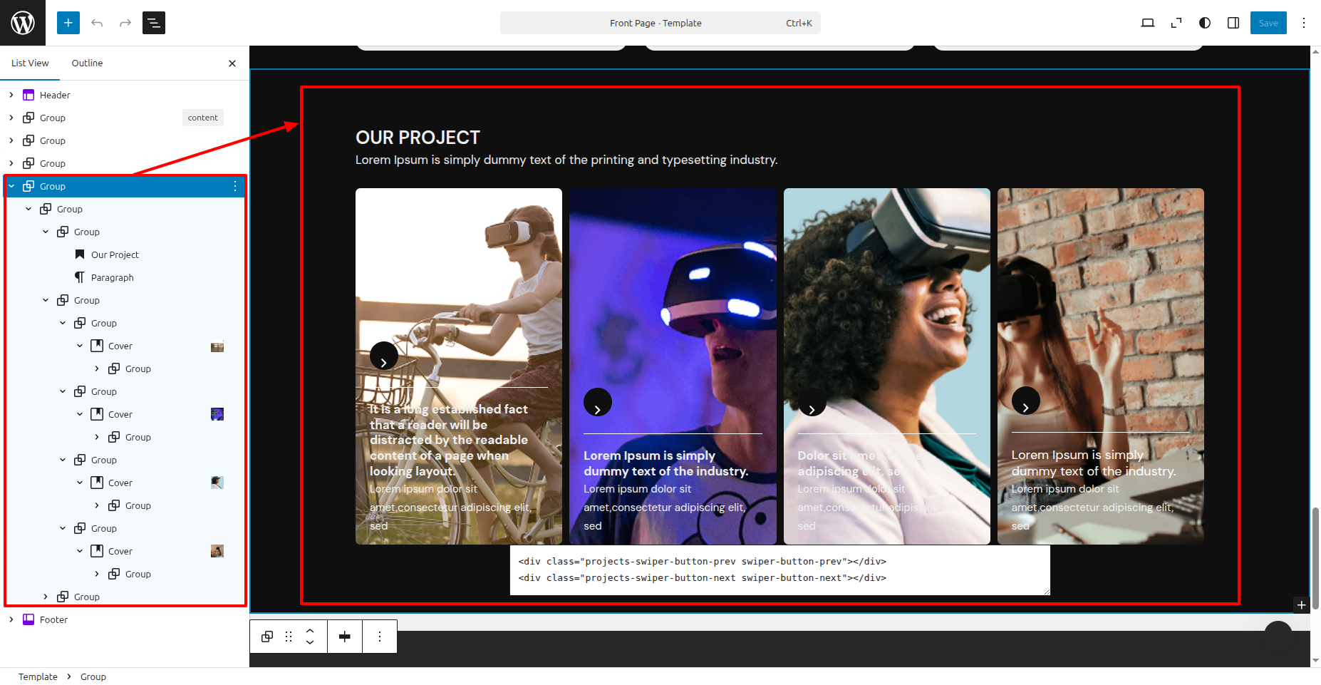 Go to WordPress Dashboard -> Appearance -> Editor -> customize each item according to your preferences by clicking on them.
