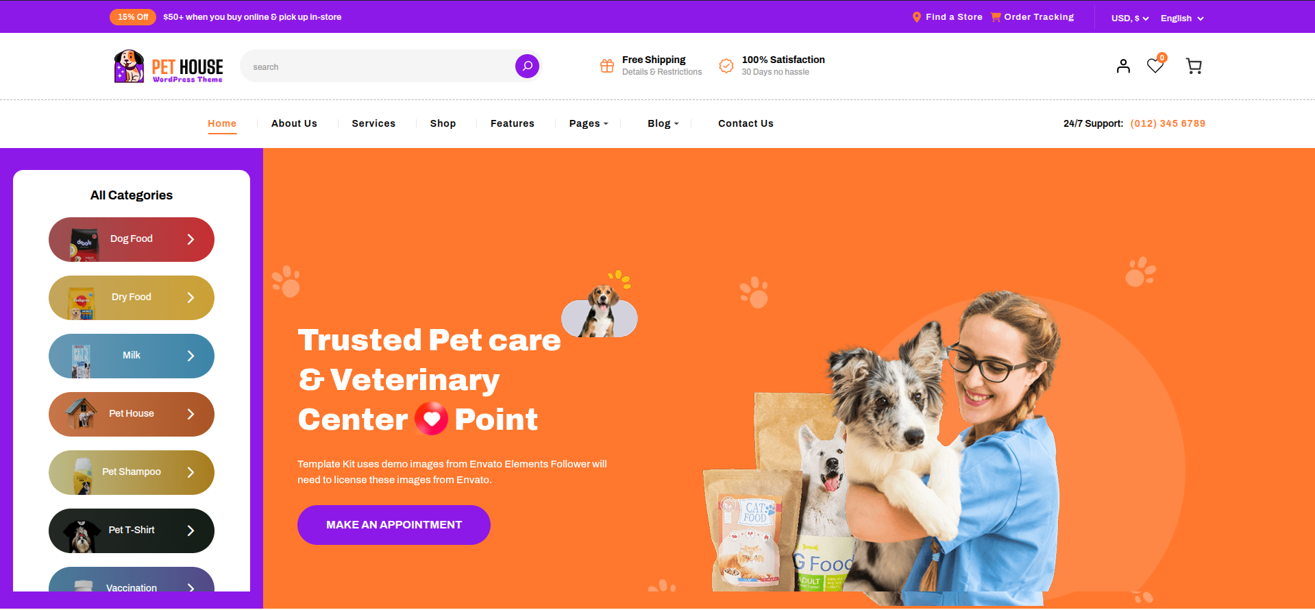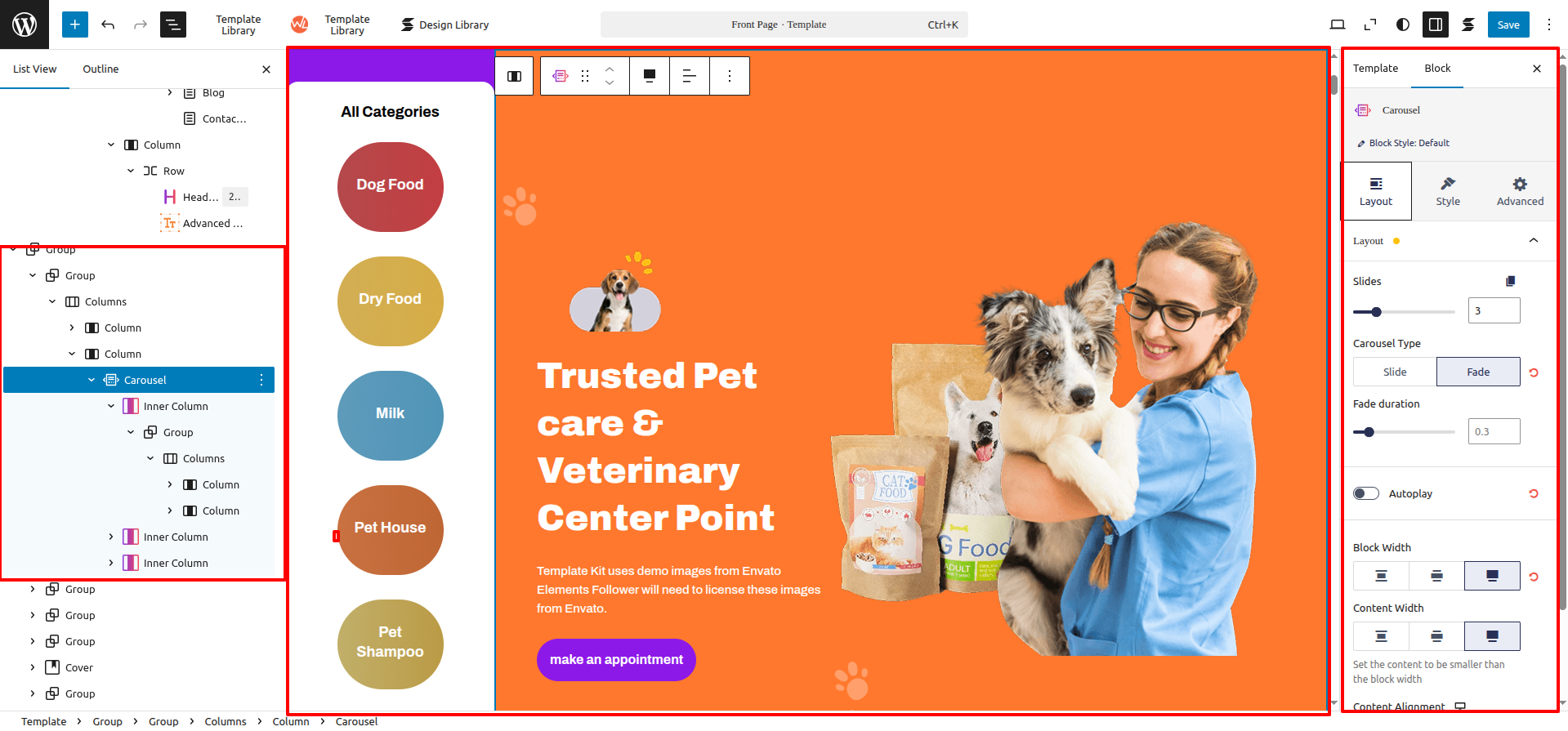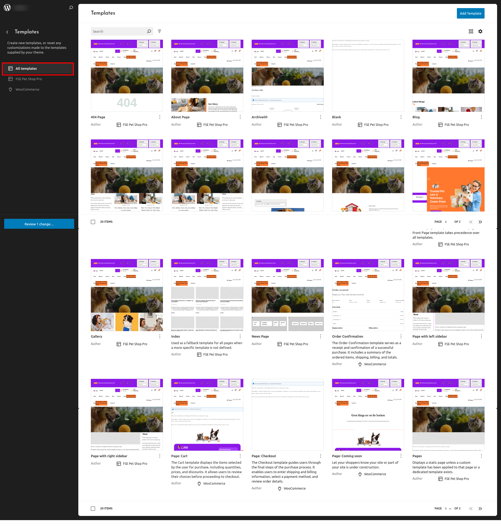 FSE Pet Shop Pro is a block theme specifically crafted using the WordPress Site Editor.