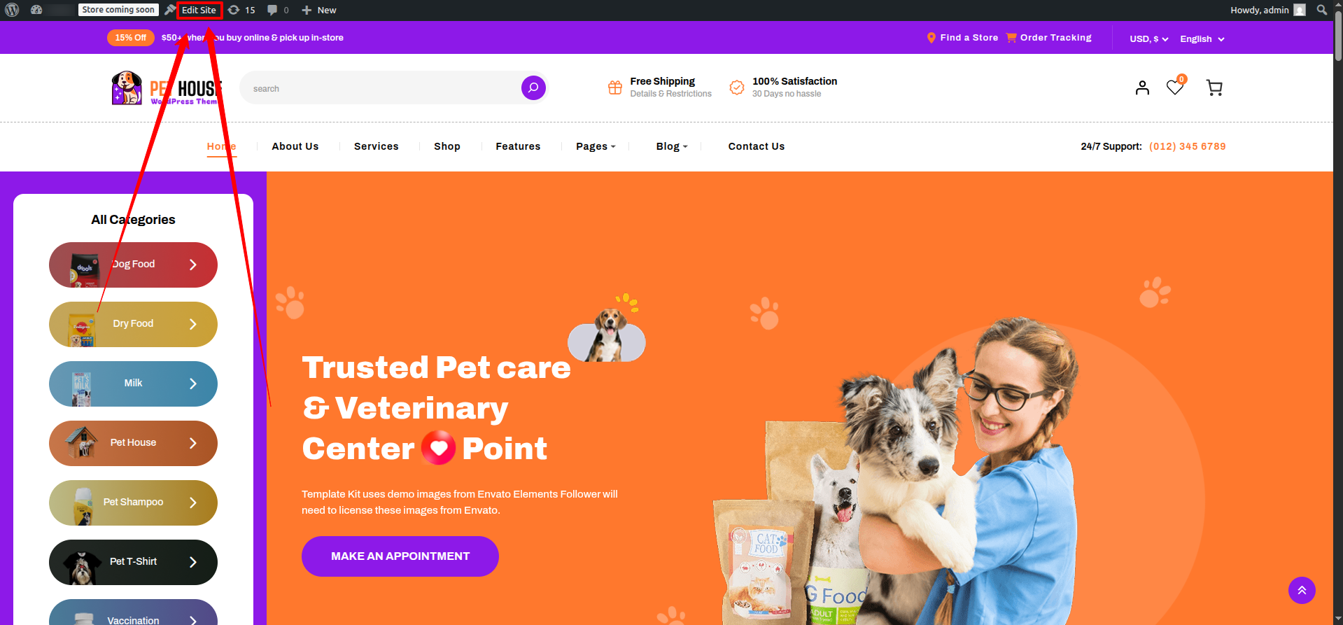 1. After clicking "Visit Site", go to the "Edit Site" option located at the top notification bar.
