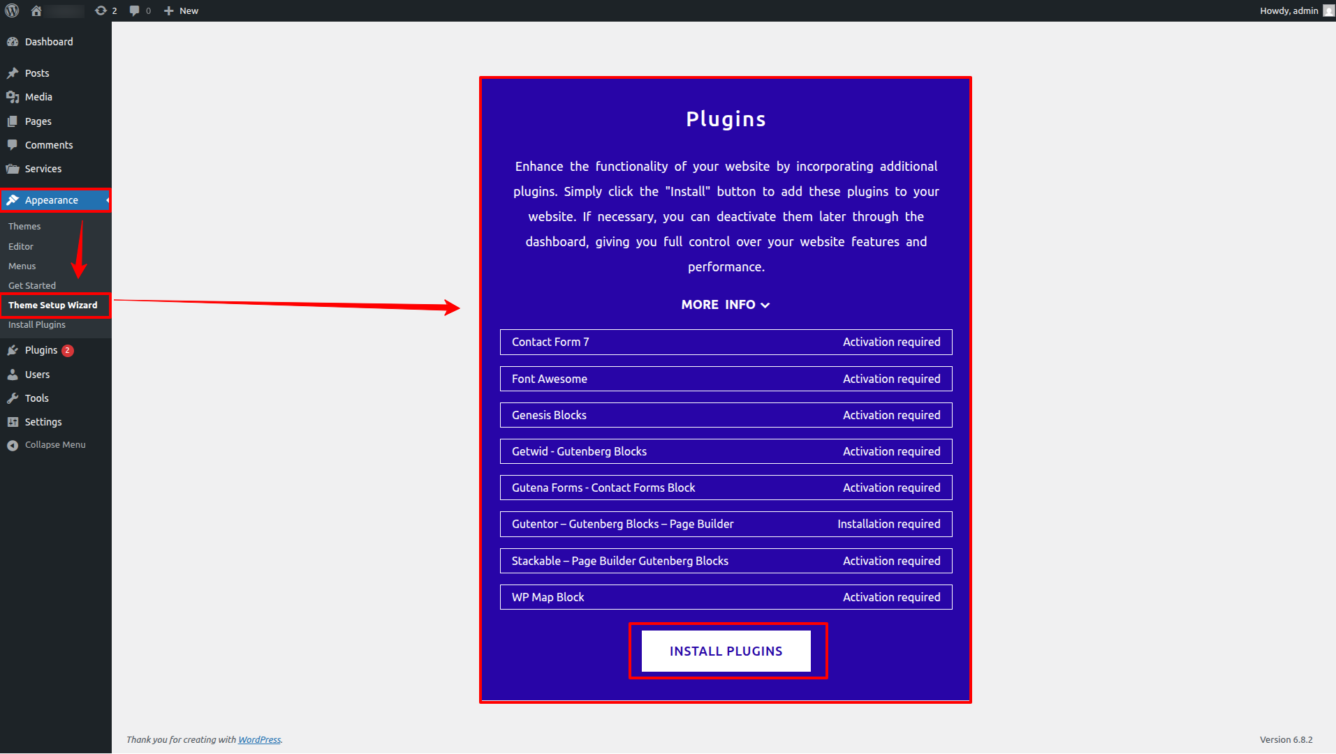 2. Click on "Install Plugins" button to install pugins used in theme.
