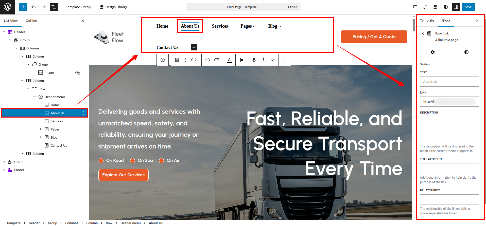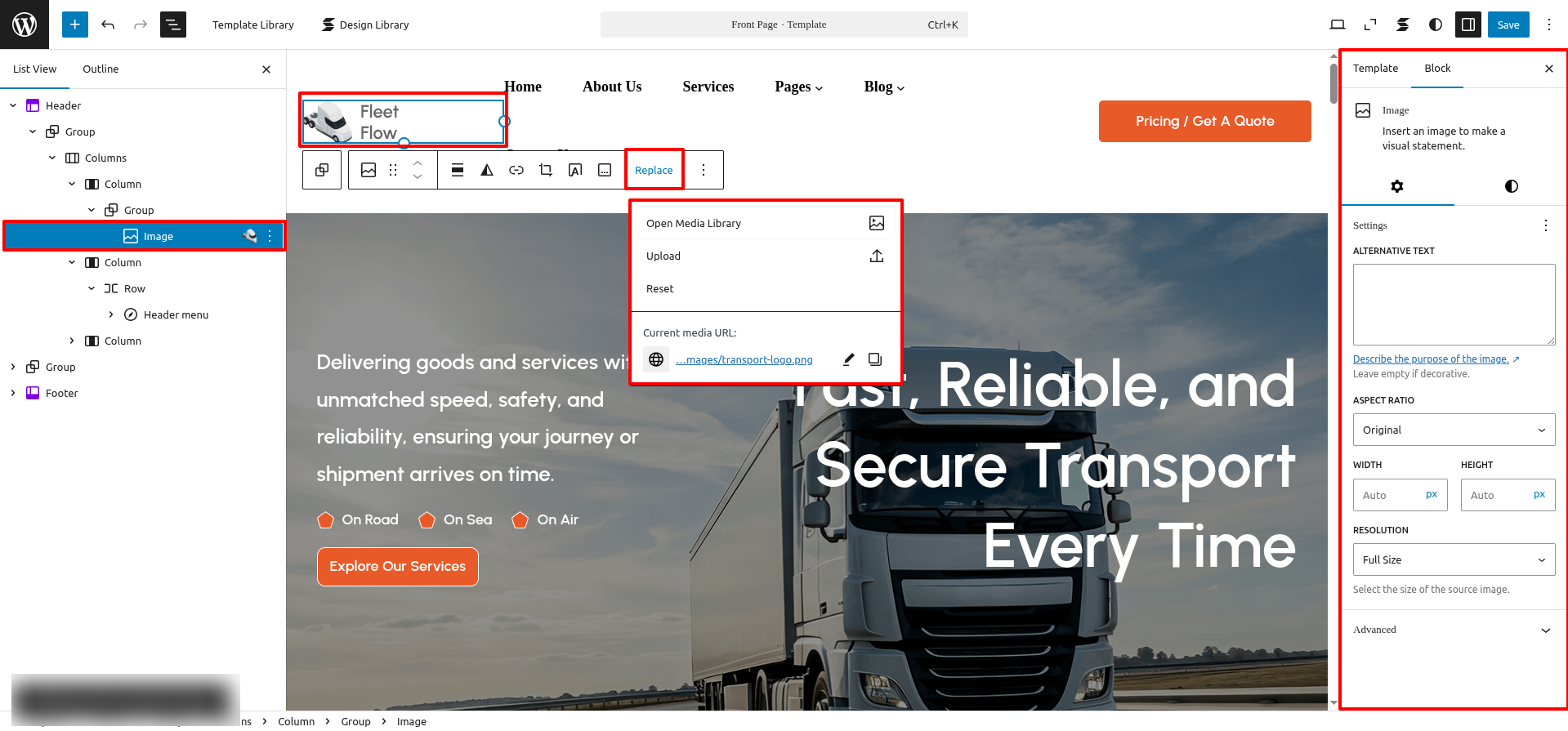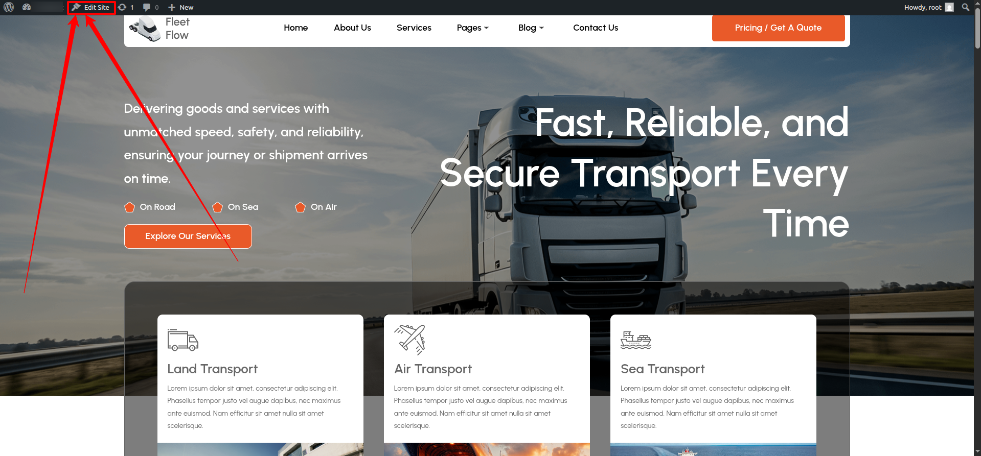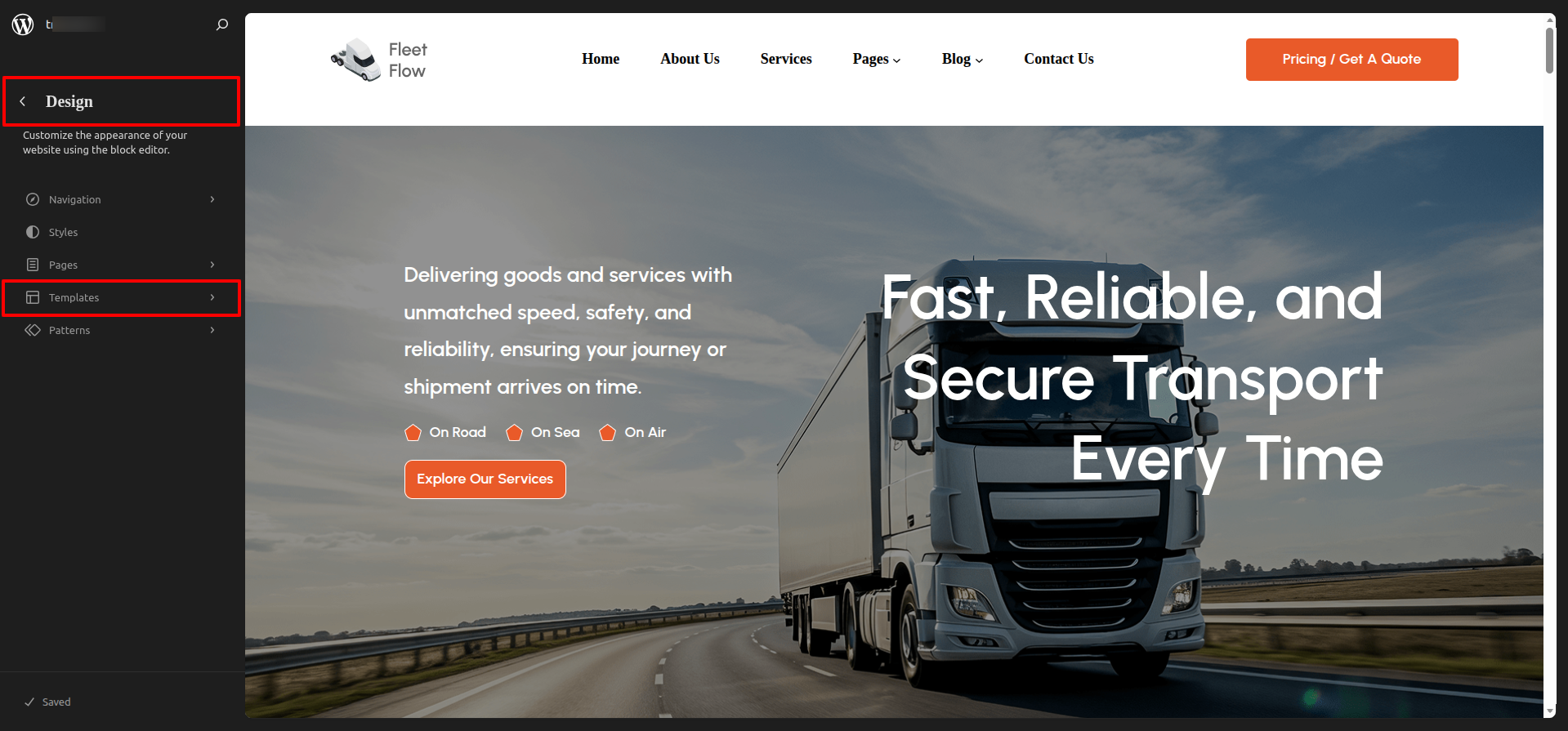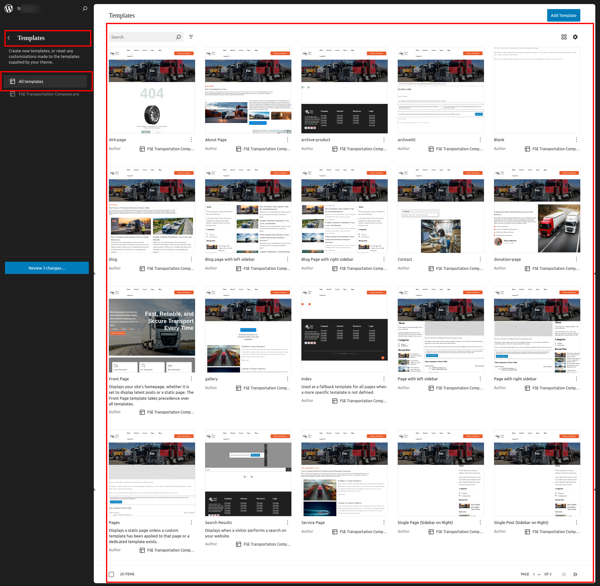 FSE Transportation Company Pro is a block theme specifically crafted using the WordPress Site Editor.