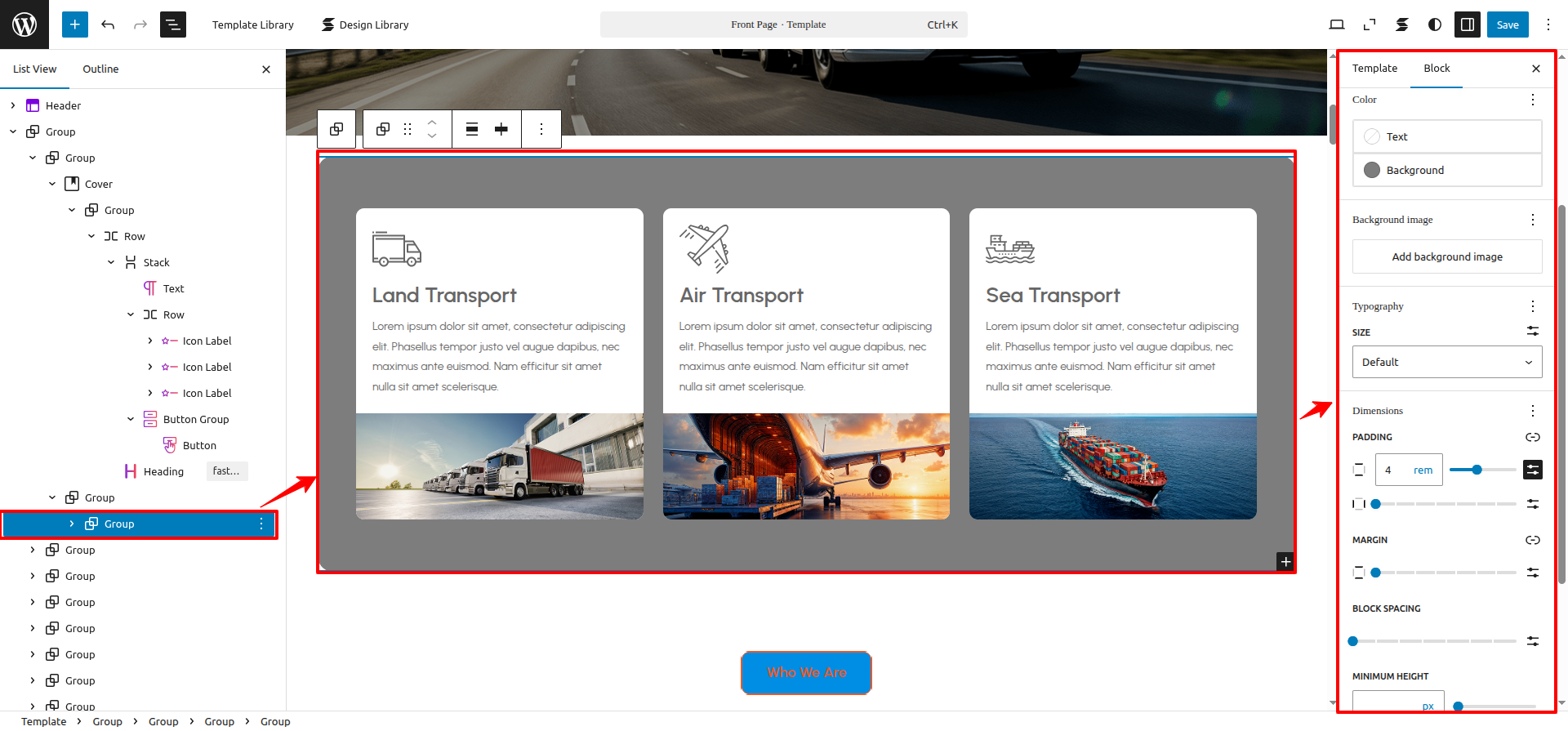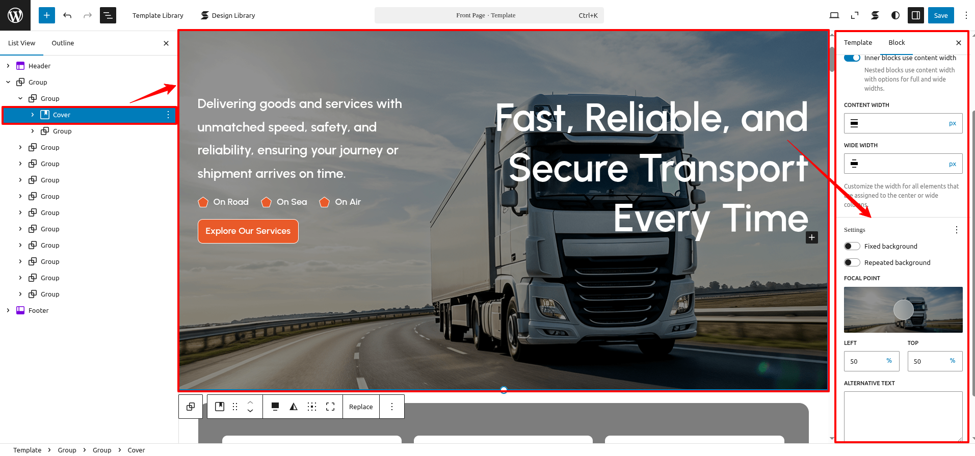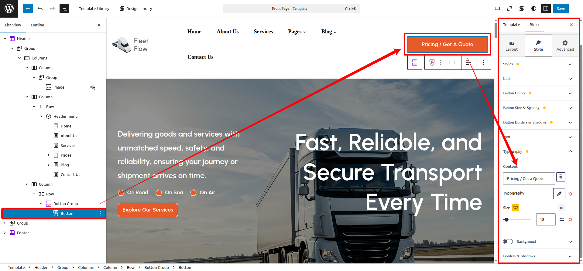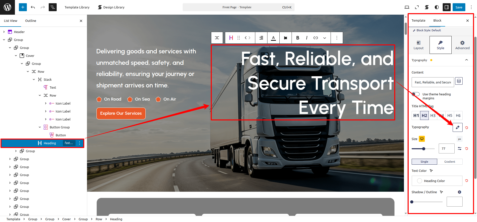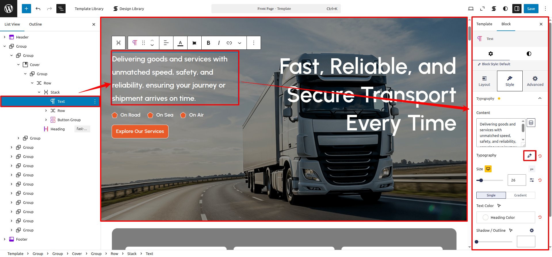 FSE Transportation Company Pro is a block theme specifically crafted using the WordPress Site Editor.