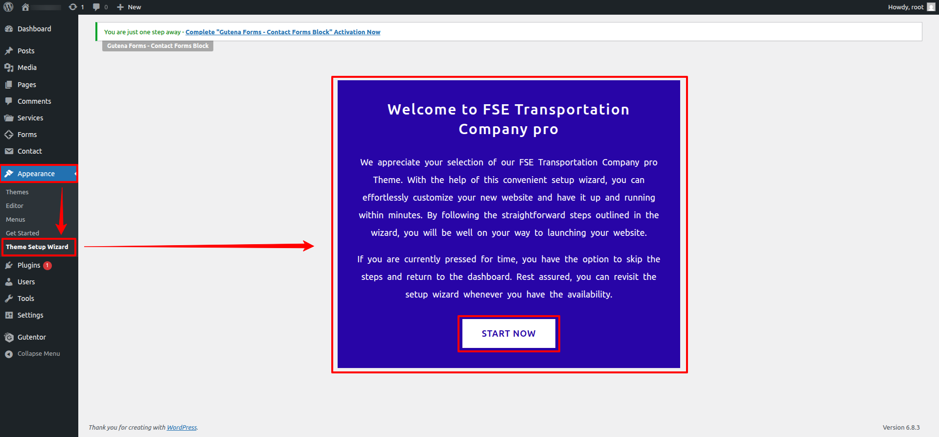 After activating the theme you will go to the wizard page where you can quickly install plugins and have the demo content of the theme.