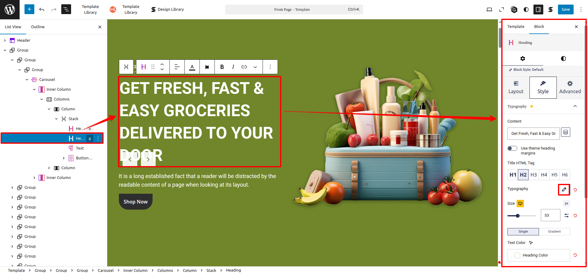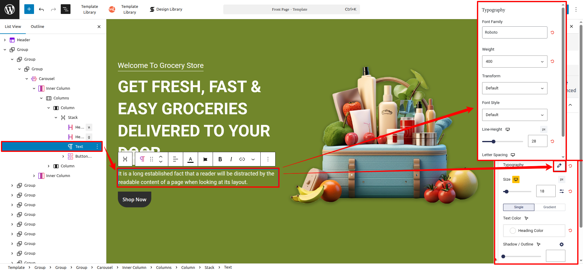Simply select the section you wish to edit, and a toolbar along with customizable setting options for that specific section/block will be revealed, allowing you to tailor it to your preferences.
