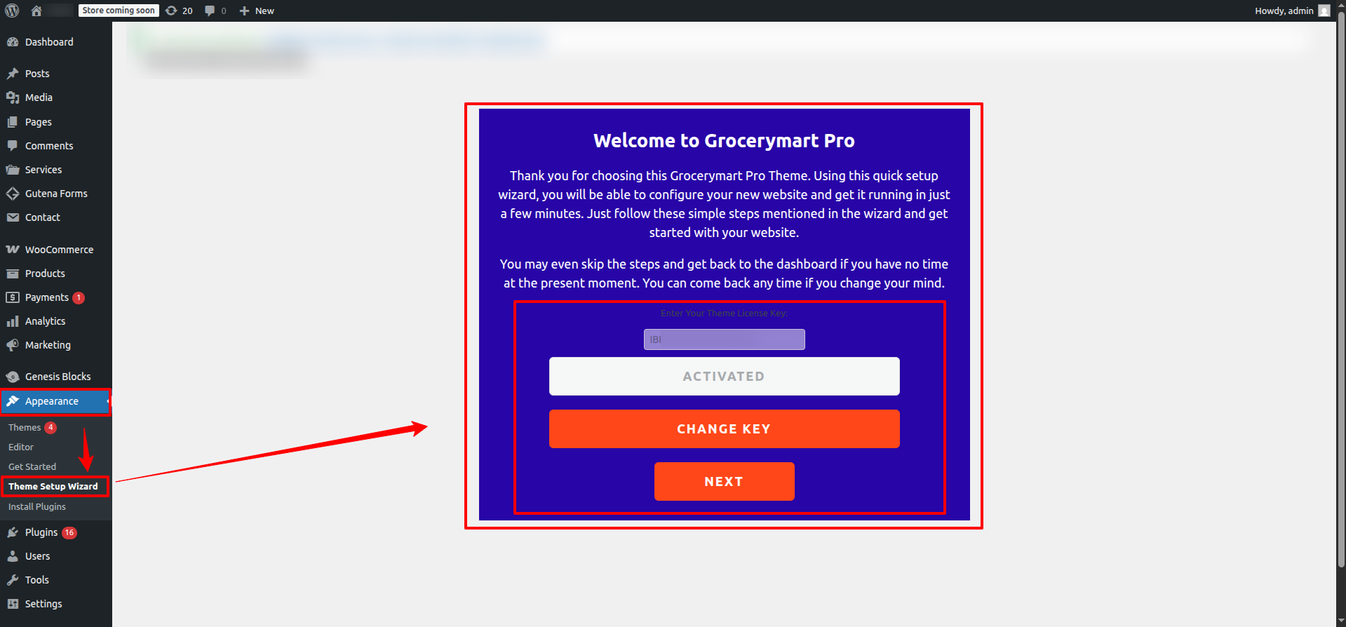 To activate the license for the Grocerymart Pro theme, please follow these steps: