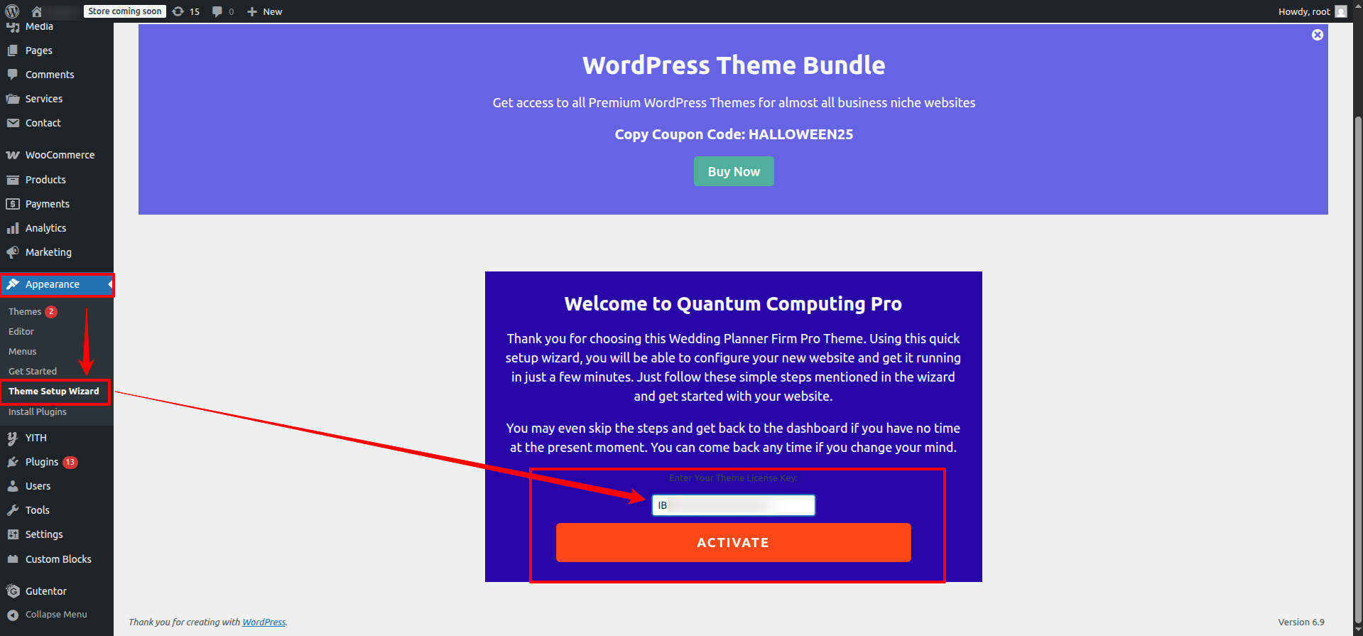 To activate the license for the Quantum Computing Pro theme, please follow these steps: