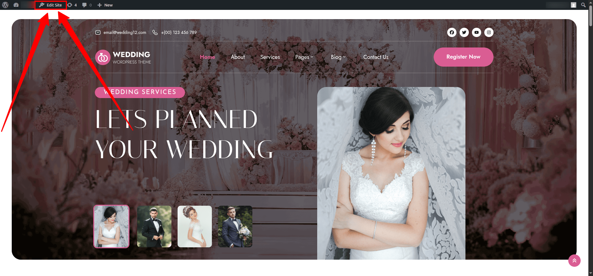 1. After clicking "Visit Site", go to the "Edit Site" option located at the top notification bar.