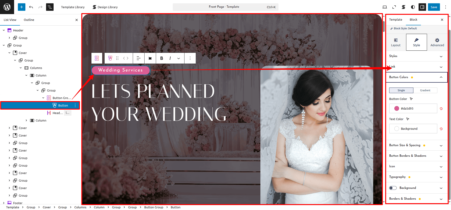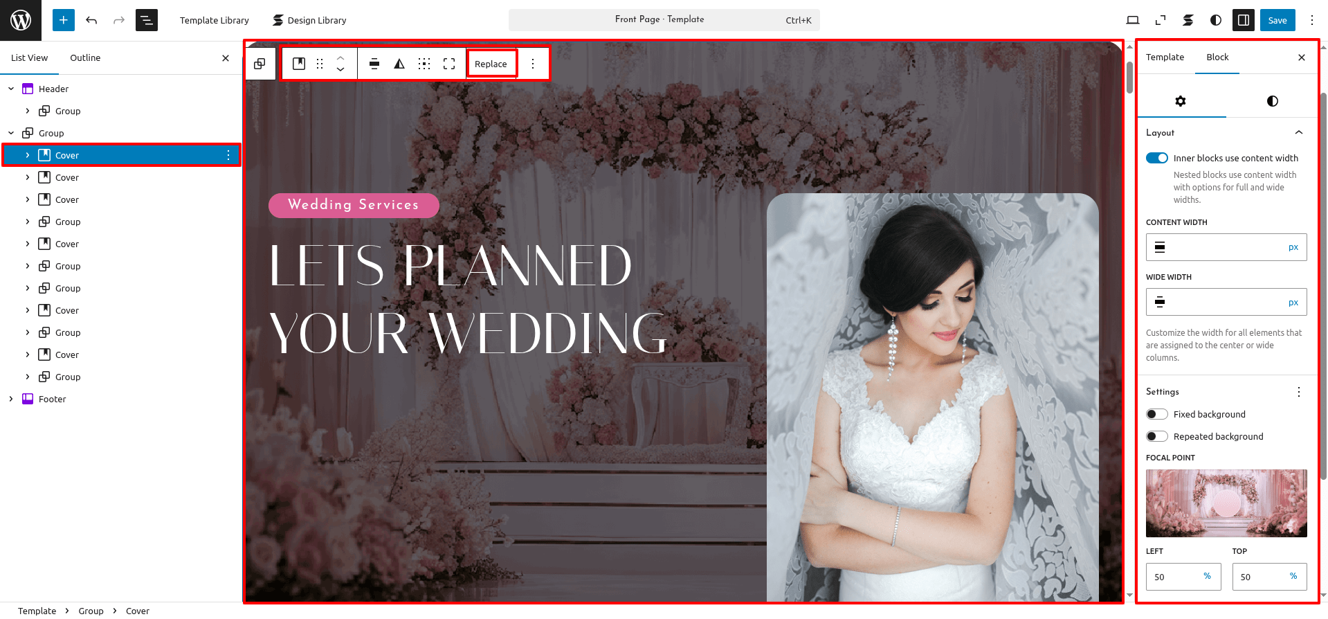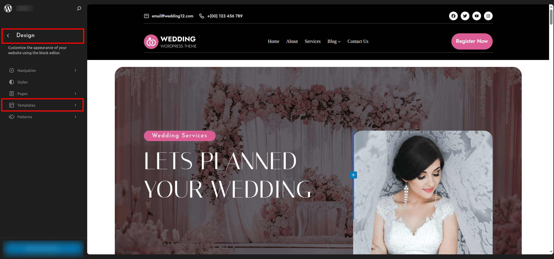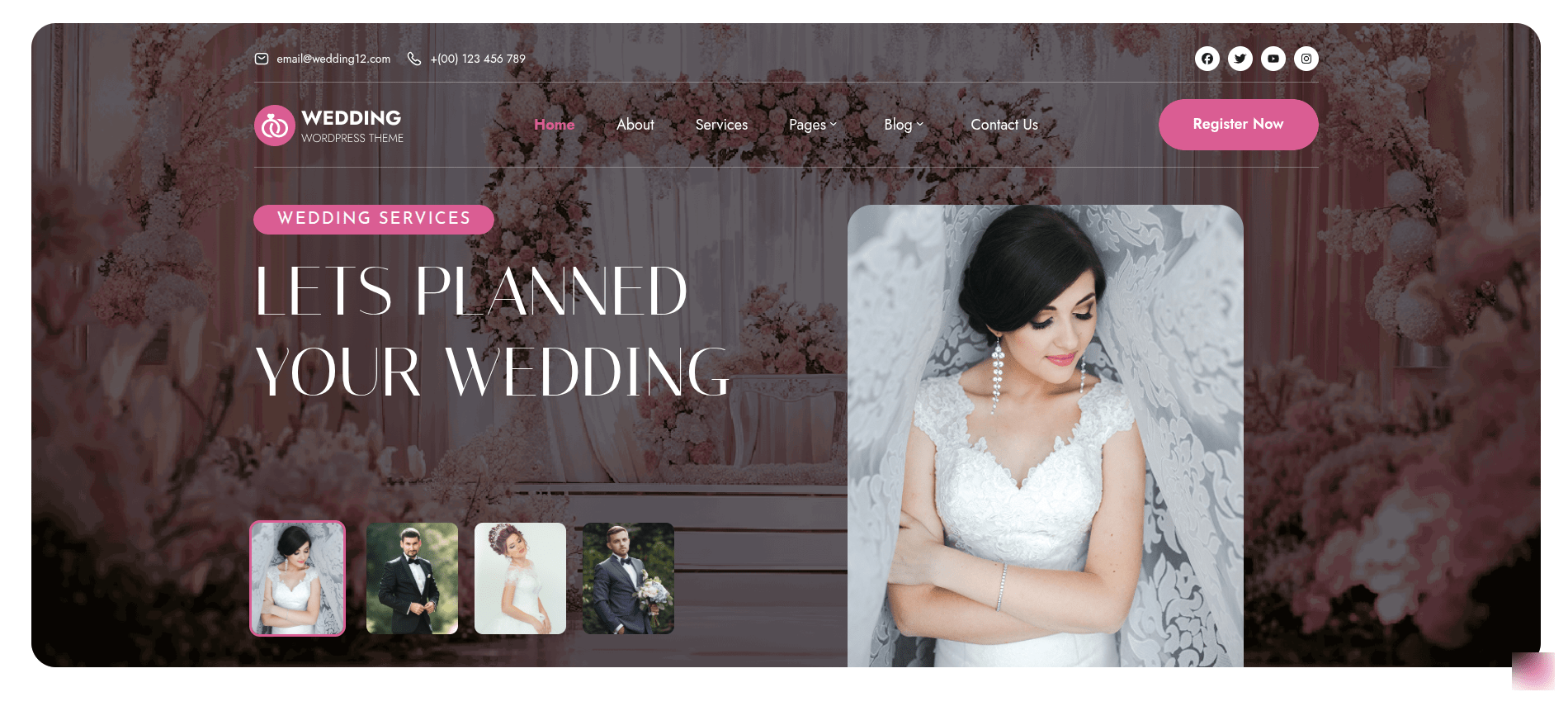 Wedding Planner Firm Pro is a block theme specifically crafted using the WordPress Site Editor.