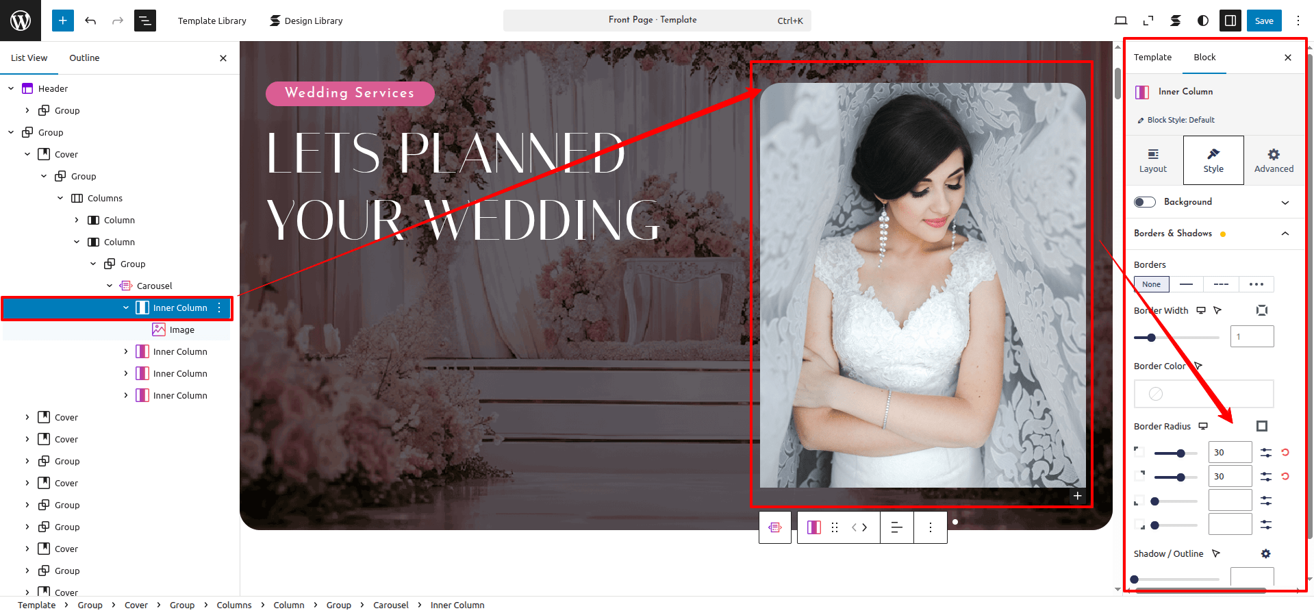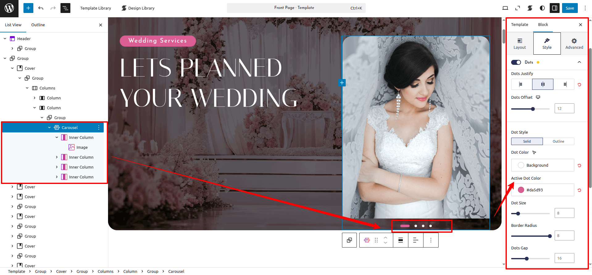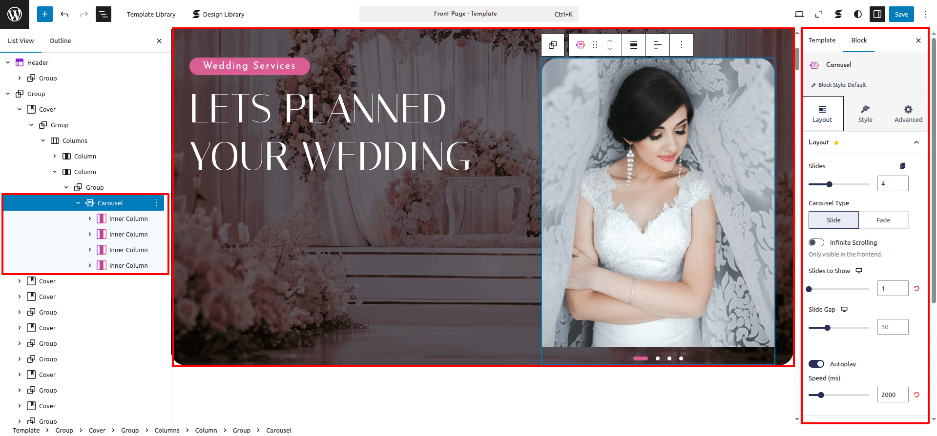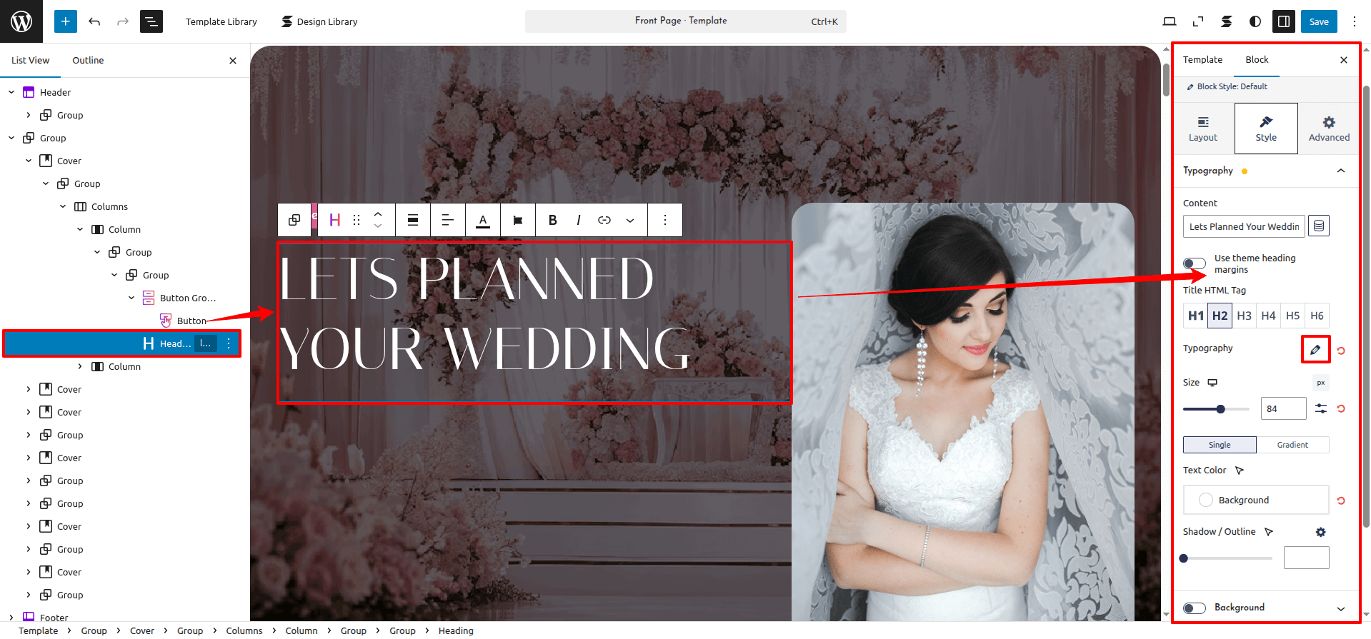 Wedding Planner Firm Pro is a block theme specifically crafted using the WordPress Site Editor.