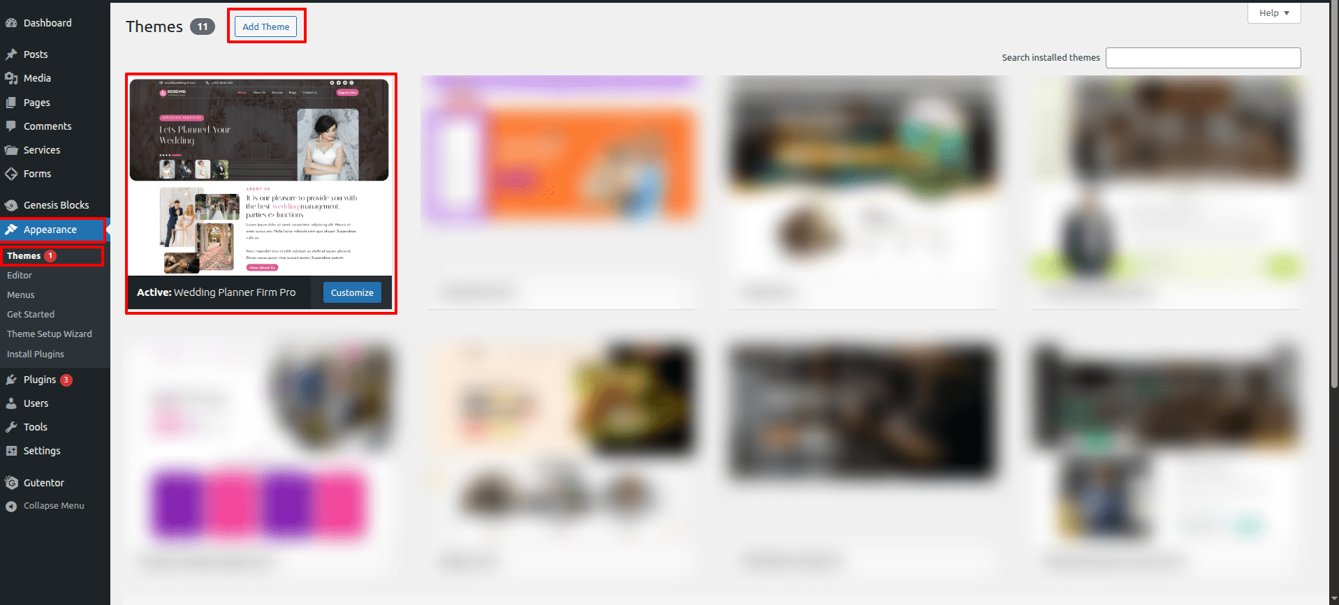- Go to the menu Appearance > Themes and click the Add New Theme button.