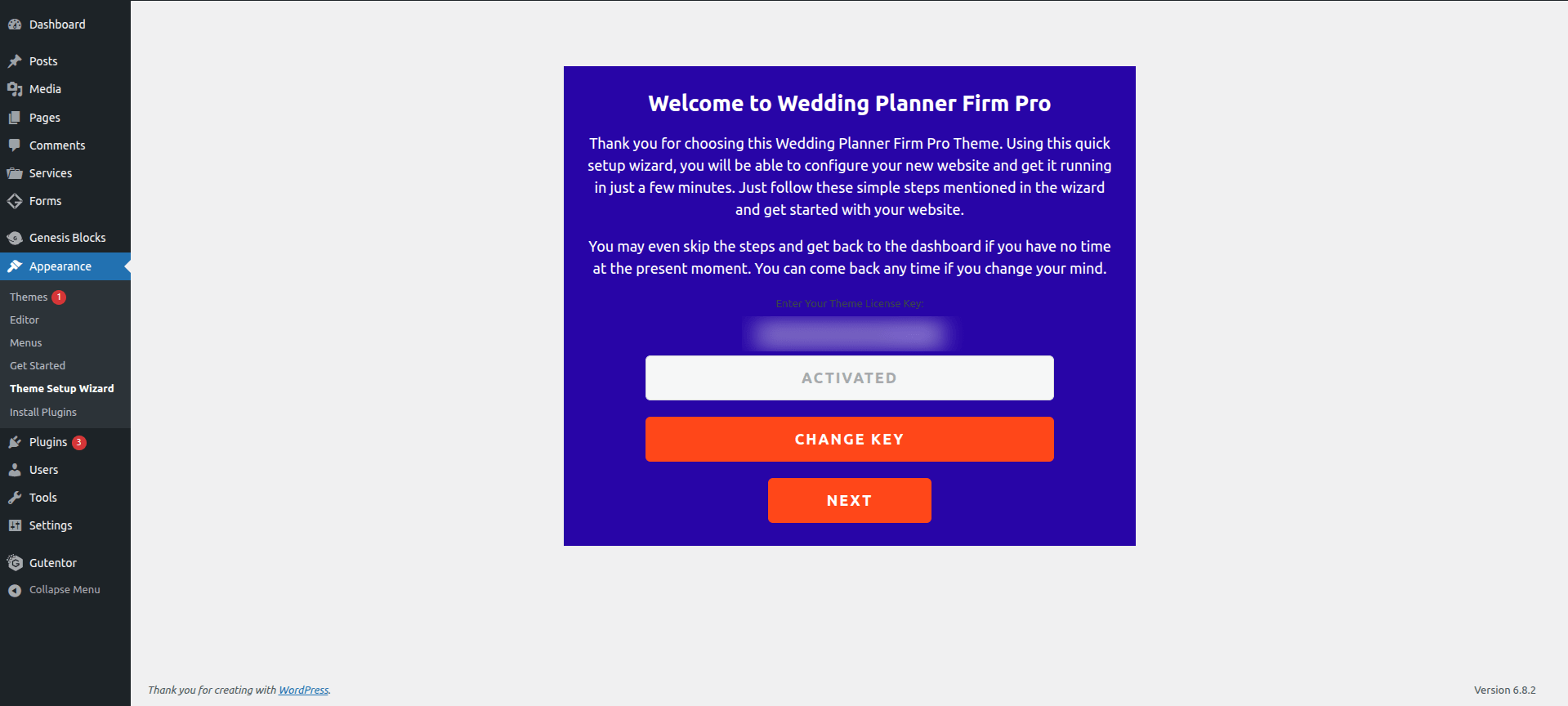 After activating the theme you will go to the wizard page where you can quickly install plugins and have the demo content of the theme.