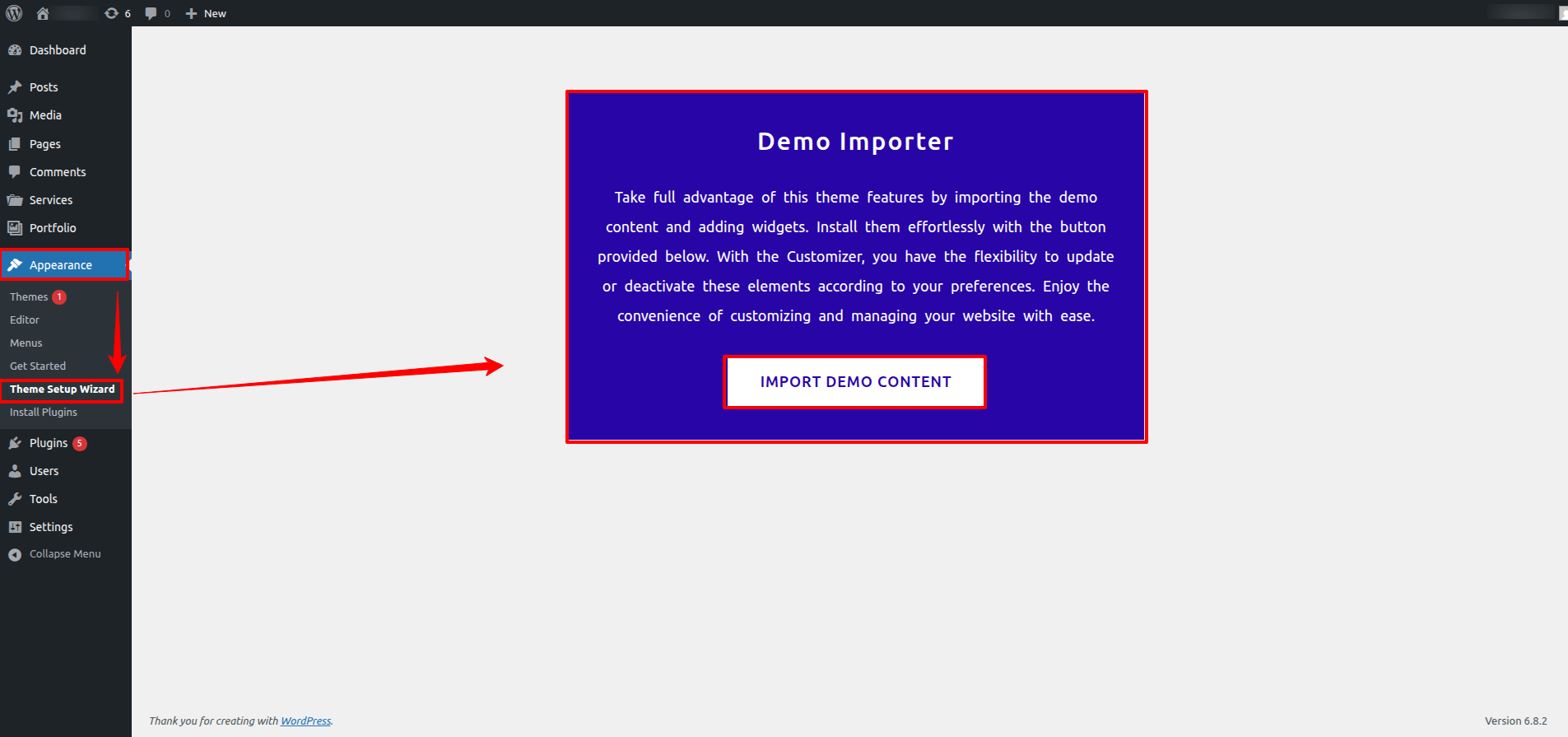 3. Click on "Import Demo Content" button to import the demo content of theme.